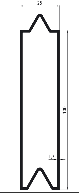 Алюминиевый профиль 621282 25х100х3200 мм. SUER, Германия