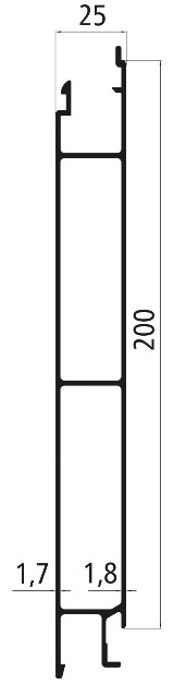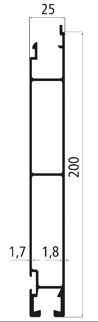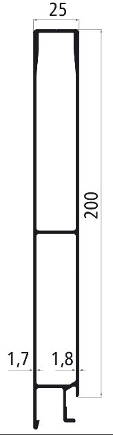 Алюминиевый профиль борта средний анод 621039 25х200х6500 мм. SUER, Германия