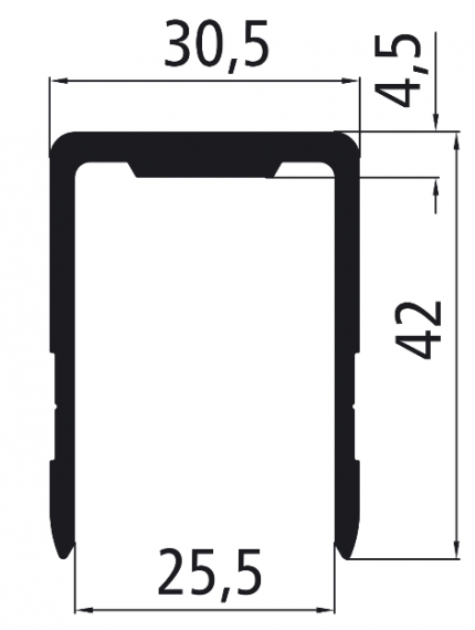 Алюминиевый профиль борта верхний анод. 621033 25х200х6500 мм. SUER, Германия