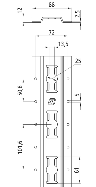 Вертикальная комбинированная анкерная рейка 3050 мм 142138008, Германия
