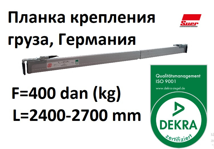 Крепёжная планка изготовлена имеет прочностные характеристики и облегчённый вес. Планка имеет телескопическую конструкцию и выдвигается от 2400 до 2700 мм. , что делает её универсальной для использования в любом кузове транспортного средства . Крепятся планки крепёжные к боковым стенкам фургонов или прицепов. Для фиксации груза планка устанавливается в вертикальную или горизонтальную такелажную рейку и фиксируется замком-защёлкой , расположенным на концах планки.