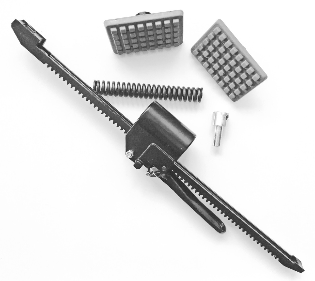 В составе: механизм фиксации (рэтчет), резиновые упоры ("пятки"), пружина с элементом крепления (1 штука).