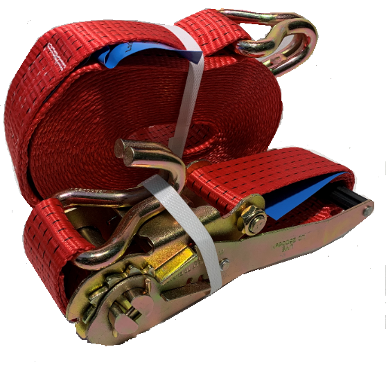 Грузовые ремни стяжные применяются для фиксации грузов при перевозке, например, на автомобильном прицепе, эвакуаторе, трейлере, грузовом судне. Эти изделия используются транспортными компаниями, эвакуационными службами и фирмами, занимающимися переездами. Изготавливаются стяжные ленты из текстильных лент шириной от 25 до 100 мм. В качестве материала чаще всего используется полиэстер – материал, обладающий высокой прочностью. На ленте установлен металлический храповый замок, который служит натяжным устройством.
